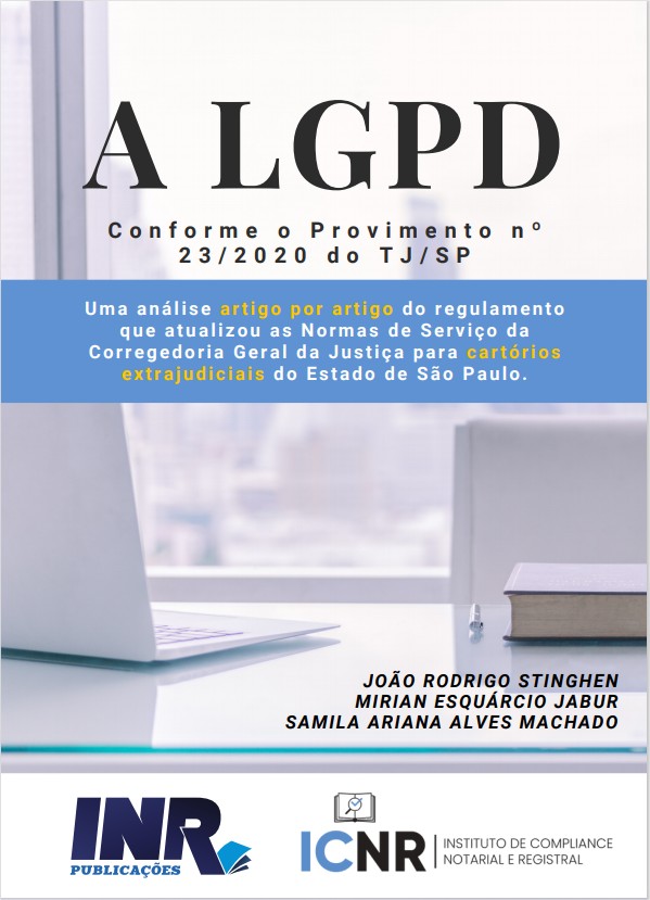 Fruto da virtuosa parceria firmada entre as Publicações INR e o ICNR — Instituto de Compliance Notarial e Registral, o ebook "A LGPD segundo o provimento nº 23/2020 do TJ/SP" proporciona ao Assinante INR a visão de três experientes profissionais a respeito de tão provocador assunto.