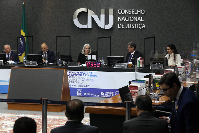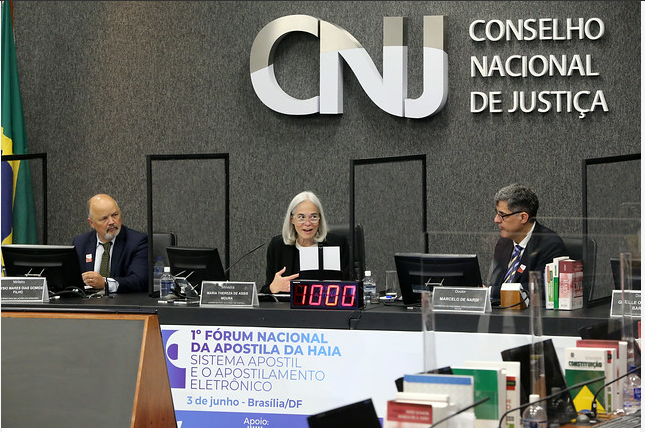 A corregedora nacional de Justiça, ministra Maria Thereza de Assis Moura, relembrou o histórico da chamada Apostila da Haia, que garante validade e segurança jurídica ao documento em qualquer um dos 118 países que integram a Convenção da Apostila da Haia. Em 14 de agosto de 2016, o Brasil passou a emitir a apostila e a Corregedoria Nacional de Justiça, como órgão fiscalizador dos serviços extrajudiciais do país, regulamentou a aplicação da Convenção no território nacional. Com o tempo, o serviço foi digitalizado e, em 2021, a Corregedoria delegou ao Colégio Notarial do Brasil a gestão operacional da plataforma eletrônica e-Apostil.