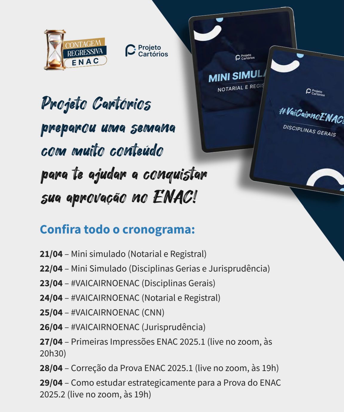 A data da prova do ENAC está chegando, e o PROJETO CARTÓRIOS preparou algo super especial para você!